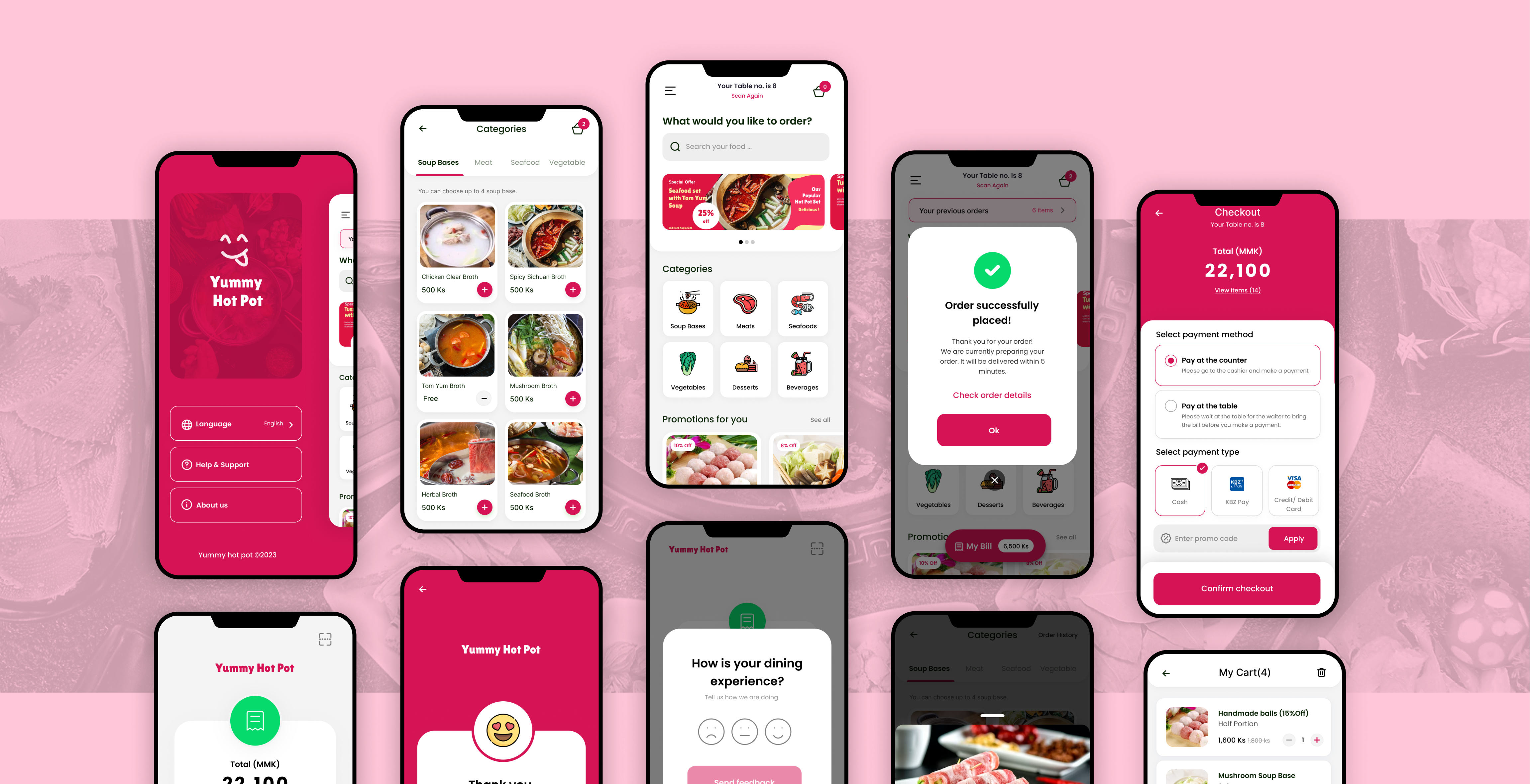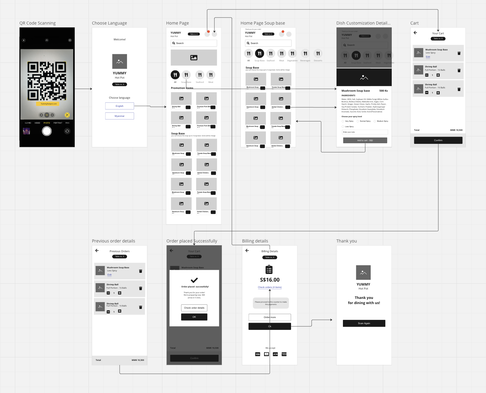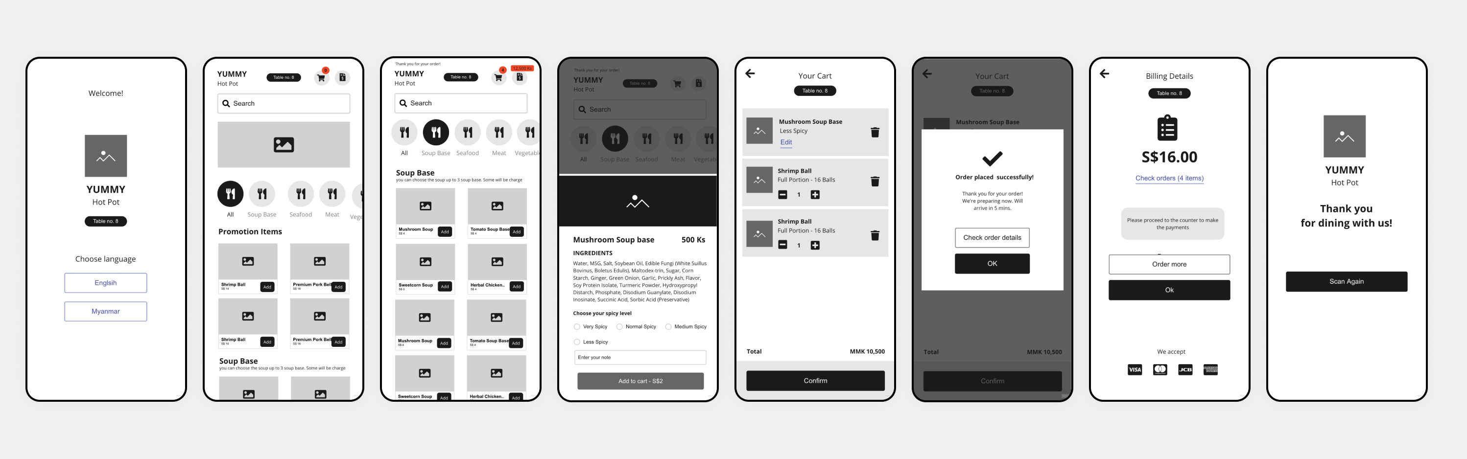 Yummy Hot Pot is a new restaurant that wants to enhance its customer experience by introducing a seamless food order web app . The app will simplify the ordering process by allowing users to order food by scanning a QR code at their table . This will eliminate the need for sign-up or login. Additionally, users will be able to access their order history and bills for convenience . As a UX/UI designer, I will create an intuitive and user-friendly app design for this project.